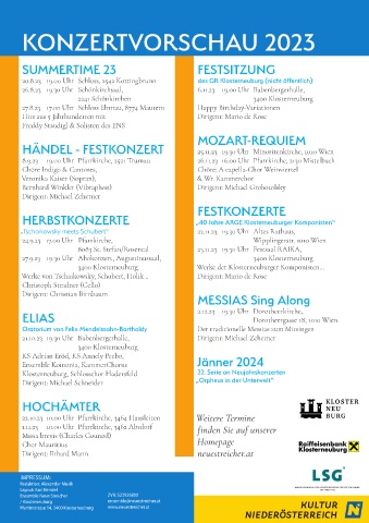 26.8.23 19.30 Uhr Schönkirchsaal, 6.11.23 19.00 Uhr Babenbergerhalle,