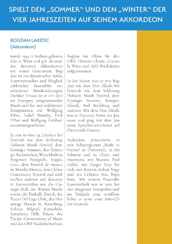 Kammermusiker und Mitglied In der Saison 2021-22 trat Bog-
