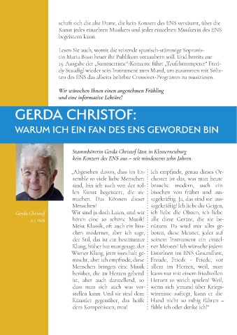 schaft sich die alte Dame, die kein Konzert des ENS versäumt, über die
